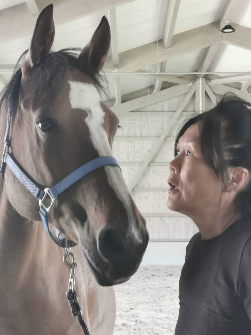 J'ai connu Equi-Libre lors du salon du Mieux-Vivre à Alle en 2023. Je recherchais une nouvelle thérapie afin de m'aider à gérer mes angoisses. L'idée d'associer les chevaux à cette thérapie m'a enchantée. J'adore les animaux, surtout les chevaux qui me comprennent sans que je leur parle !